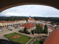 Pomijając, swoją drogą niezwykle ciekawą historię miasta, a także większość jego zabytków i ciekawych miejsc (napiszemy o nich wkrótce w oddzielnym artykule), skoncentrukmy się na największej atrakcji Novego Města nad Metują, a więc na tutejszym zamku. W XIX wieku, w czasach żywiołowego rozwoju przedsiębiorczości doszło do znaczącej zmiany wizerunku miasta. W roku 1874 zburzono Krajską Bramę, bowiem utrudniała komunikację. Podcienia domów przekształcano w warsztaty, przebudowano budynek ratusza, rozbierając wieżę, zburzono część murów miejskich, wykorzystując kamień na tłuczeń. W rynku zasypano starą studnię miejską i zlikwidowano fontannę. Po pożarze w 1888 r. rozebrano resztę renesansowych szczytów domów w rynku. W końcu, w 1905 r. ofiarą padła Horská Brama. Jedynie z zamkiem los obszedł się łaskawiej, a to za sprawą ostatnich właścicieli Novego Města.