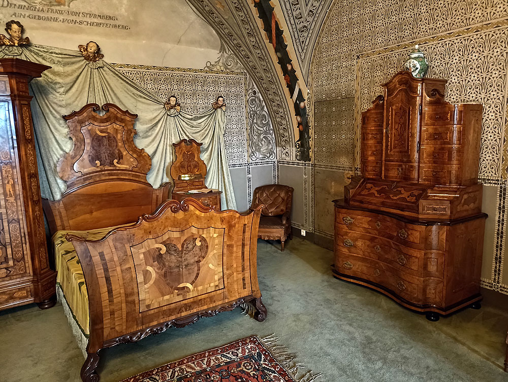 Remont zamku przebiegł w latach 1909-1912. Jurkovič przeprowadził prace konserwatorskie, odkrywając i zachowując fragmenty starszych murów, XVI-wiecznych polichromii głównej fasady zamku oraz barokowych sztukaterii i fresków we wnętrzach. Do ozdobienia zamkowych komnat zaprosił czeskich artystów, którzy zapełnili wnętrza ceramiką, gobelinami, specjalnie tkanymi dywanami, szkłem, porcelaną i dziełami sztuki. W ten sposób powstała w zamku skarbnica twórczości artystów czeskich pokolenia przed i po I wojnie światowej.