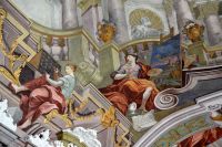 W czasie badania malowideł okazało się, że pod warstwami zabrudzeń i przemalowań w wielu miejscach zachowały się duże fragmenty barokowego oryginału. Do jego odtworzenia posłużyły wykonane w 1944 roku przez Rudolfa Jaguscha kolorowe slajdy dokumentujące dekorację, a także wyraźne, choć czarno-białe zdjęcia z końca XIX wieku – bardzo cenne, ponieważ ukazują stan malowideł sprzed renowacji Langera.