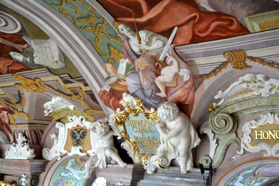 Prace w Auli odsłoniły przed konserwatorami kilka niespodzianek. Po ustawieniu rusztowań na podium, okazało się, że siedząca po prawej stronie posągu cesarza Leopolda alegoria Industrii (pracowitości, zapobiegliwości) ma zwiniętą lewą dłoń, jakby coś w niej wcześniej trzymała. Analiza dokumentacji fotograficznej pozwoliła na odtworzenie brakującego berła z uskrzydloną dłonią, symbolizującą szybką myśl i czyn. Również aniołek ponad posągiem cesarskiego syna Józefa odzyskał utracony w przeszłości miecz – symbol władzy sądowniczej Rektora. Z kolei św. Franciszkowi Ksaweremu w scenie na sklepieniu nad podium odebrano domalowaną po II wojnie światowej księgę. Swoją zaś, leżącą na kolanach, księgę odzyskała tronująca Silesia na fresku ponad emporą muzyczną. Okazało się też, że postać po prawej stronie Silesii, określana dotąd jako Wratislavia, prócz herbu Wrocławia ma też herby Świdnicy i prawdopodobnie Legnicy, a na głowie koronę uwieńczoną blankami, więc może być alegorią miasta. Obok niej widoczne są worki z pieniędzmi oznaczone znakiem handlowym. Beczki z podobnym znakiem widać poniżej męskiej postaci z wiosłem namalowanej po drugiej stronie fresku. Może więc domniemany bóg Odry Viadrus symbolizuje po prostu rzekę, a obie postacie – główne źródła bogactwa Śląska? Jeszcze jedną ciekawostką są złocone listewki z nabitymi licznymi gwoździkami umieszczone ponad drzwiami w zachodniej części Auli, które mogły służyć do zawieszania kotar. Podobne listewki odkryto nad niektórymi portretami dobroczyńców Uniwersytetu. Przypuszcza się, że mogły znajdować się na nich tkaniny przesłaniające braki w wystroju podczas uroczystości poświęcenia Auli, co przesuwałoby datę ukończenia jej dekoracji.