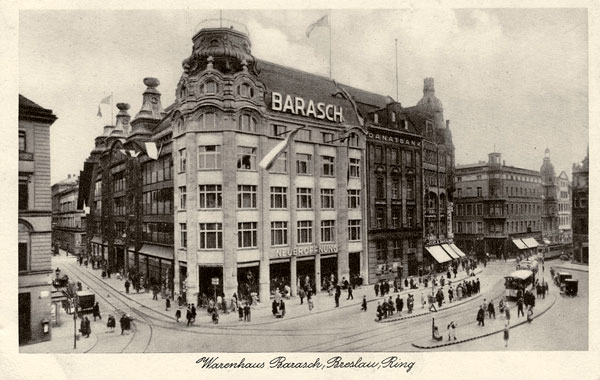 Dawny dom towarowy braci Baraschów przetrwał drugą wojnę światową w całkiem dobrym stanie i stanowi handlowy fenomen Wrocławia – działa od ponad 114 lat. Historia powojenna obiektu jest równie pasjonująca co przedwojenna. Przedstawię ją w następnym artykule… A kogo zaciekawił tekst, zapraszam do lektury książki. Moim nieskromnym zdaniem, jest naprawdę ciekawa :-)