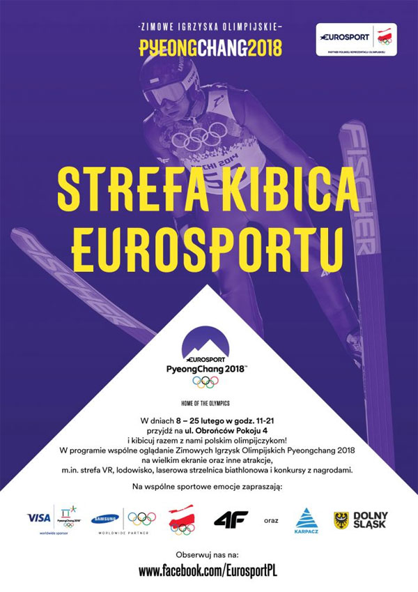 Strefy Kibica Eurosportu Zimowych Igrzysk Olimpijskich wystartują dzień przed ceremonią otwarcia igrzysk w Pyeongchang, w czwartek 8 lutego 2018 r., kiedy to odbędą się kwalifikacje do konkursu skoków narciarskich na skoczni normalnej. Będą to specjalnie wydzielone obszary, w których miłośnicy sportów zimowych wspólnie będą przeżywać olimpijskie emocje. Strefy będą otwarte codziennie, od 8 do 25 lutego w godz. 11.00 do 21.00, a zawody wyświetlane na telebimie o powierzchni około 15 metrów kwadratowych. Kibice obejrzą na żywo emocjonujące starty polskich Olimpijczyków na czele ze skoczkami narciarskimi, biathlonistkami, czy Justyną Kowalczyk. Nie zabraknie też transmisji z hokeja na lodzie, narciarstwa alpejskiego i innych, emocjonujących dyscyplin.