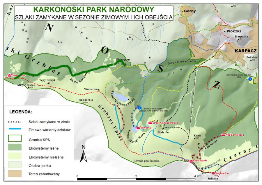 Każdego roku, o różnych porach, zamykane są w Karkonoszach fragmenty szlaków turystycznych. Spowodowane jest to najczęściej względami bezpieczeństwa lub koniecznością ochrony zagrożonych gatunków. Dyrekcja Karkonoskiego Parku Narodowego poinformowała, że w związku z ustaniem zagrożenia lawinowego, otwarty został szlak zielony prowadzący od Pielgrzymów przez Kocioł Smogorni do Schroniska Odrodzenie.