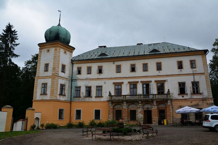 Pałac pozostawał w rękach rodziny Nádhernych do 1945 roku, gdy skonfiskowano go na podstawie dekretów Edwarda Beneša. Wyposażenie, w tym meble, dywany, gobeliny, dzieła sztuki, zbroje rycerskie, liczący 3000 tomów księgozbiór, weneckie lustra i kryształowe żyrandole zostały stopniowo rozkradzione. Z ogrodu znikła ośmiometrowej wysokości oranżeria wraz z egzotycznymi roślinami. W latach 50-tych pałac przekazano Ministerstwu Szkolnictwa i Kultury i zorganizowano w nim internat dla uczniów szkoły zawodowej przy fabryce włókienniczej w Górnym Adršpachu. Po pięciu latach budynek przekazano państwowemu gospodarstwu rolnemu. Zaniedbany, stopniowo zaczął niszczeć. Wówczas też zburzono sąsiadujący z pałacem budynek administracyjny.
