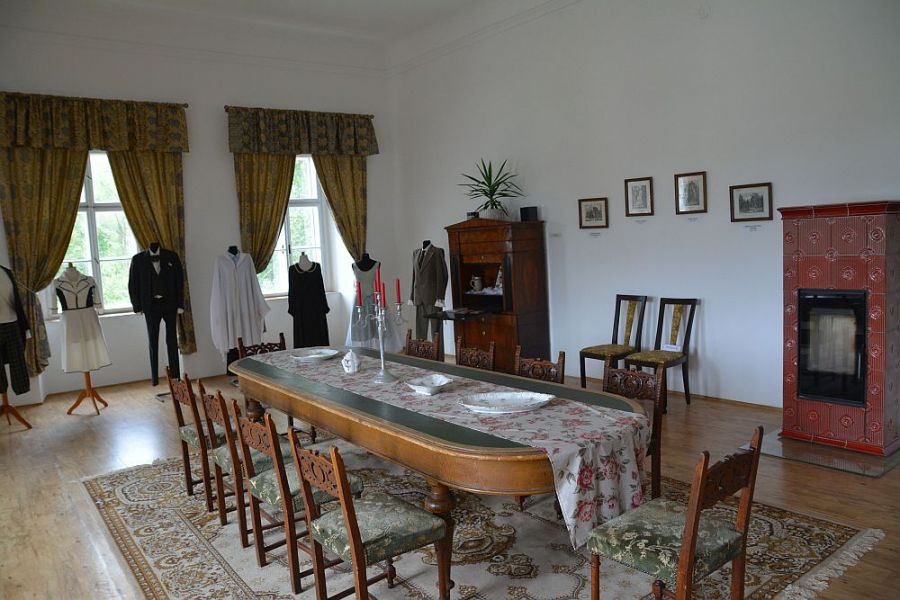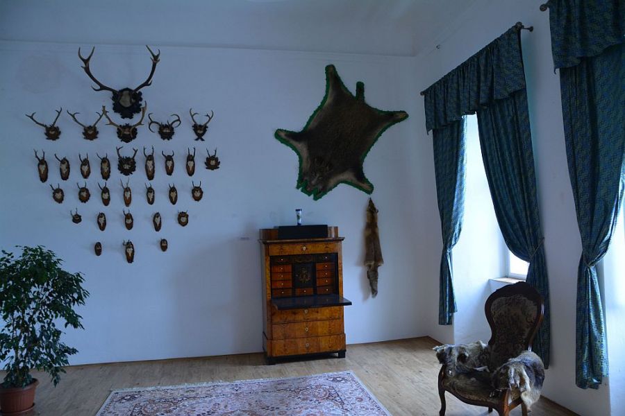 Obecnie w dwóch pomieszczeniach parteru można zobaczyć niewielką wystawę poświęconą historii regionu oraz jednemu z najważniejszych rzemiosł okolicy – lniarstwu. Pierwsze piętro to dawne pomieszczenia reprezentacyjne i mieszkalne właścicieli Adršpachu. Niestety jedynym elementem dawnego wystroju jest częściowo zachowana dekoracja stiukowa sufitów. Znajdujące się we wnętrzach historyczne meble i obrazy sprowadzono z różnych czeskich zamków i muzeów. Na drugim piętrze można zobaczyć ciekawą wystawę na temat tradycji wspinaczkowych Adršpachu. Jest to pierwsza wystawa tego typu w Republice Czeskiej. Wśród eksponatów uwagę przyciągają wykonane domowym sposobem uprzęże wspinaczkowe, pierwsze przewodniki dla wspinaczy, stare książki wejść na skały, obuwie używane do wspinaczki w latach 60-tych czy sprzęt do gotowania sprzed kilkudziesięciu lat. W pomieszczeniach obok prezentowane są prace młodych artystów plastyków.