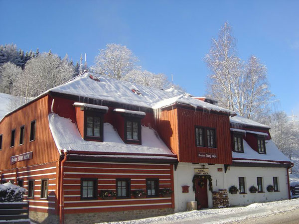 Zapraszamy do rodzinnego pensjonatu w Karkonoszach. Pensjonat Starý mlýn znajduje się na wysokości 700 m npm, w Velkiej Úpie, która jest częścią Peca pod Sněžką. Nasz dom jest idealnym miejscem zarówno dla zimowej, jak i letniej turystyki oraz sportu. Dawniej w młynie mielono mąkę, dzisiaj już tego nie robimy, za to możemy zaoferować Państwu zakwaterowanie w 2-, 3-, 4- oraz 5-osobowych pokojach. Do dyspozycji gości oddajemy również w pełni wyposażoną kuchnię, w której można przygotować własne posiłki, a także świetlicę z kominkiem i TV, jadalnię oraz bar z lanym piwkiem. Dla dzieci przygotowaliśmy na piętrze kącik zabaw, w domu jest również możliwość korzystania z sieci bezprzewodowej WiFi.