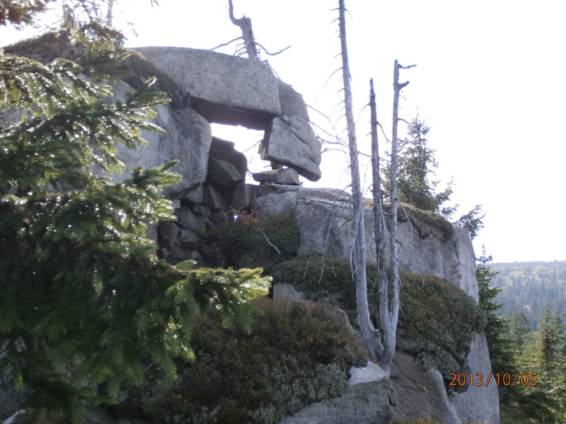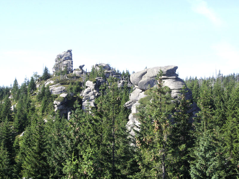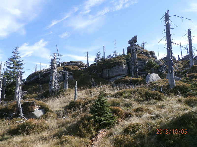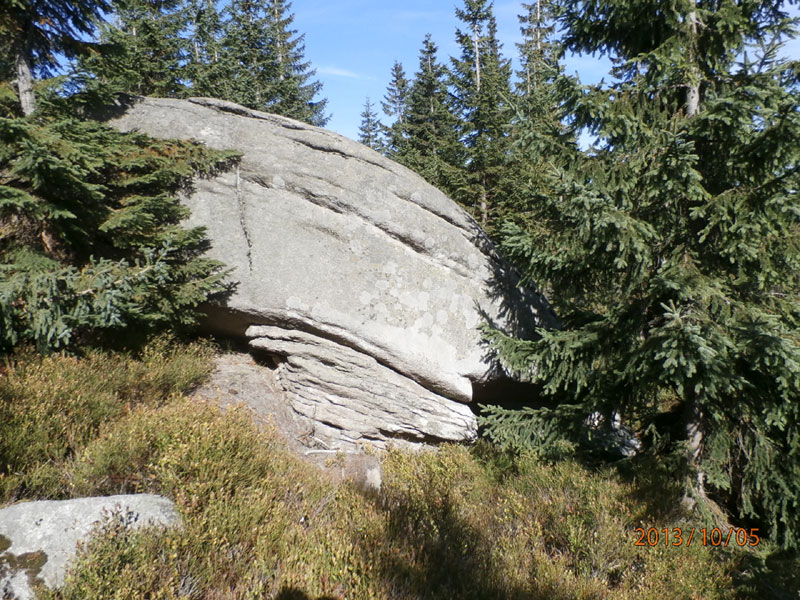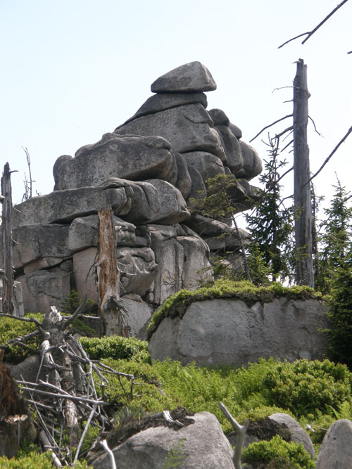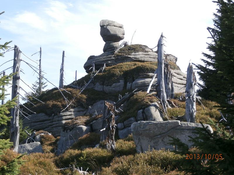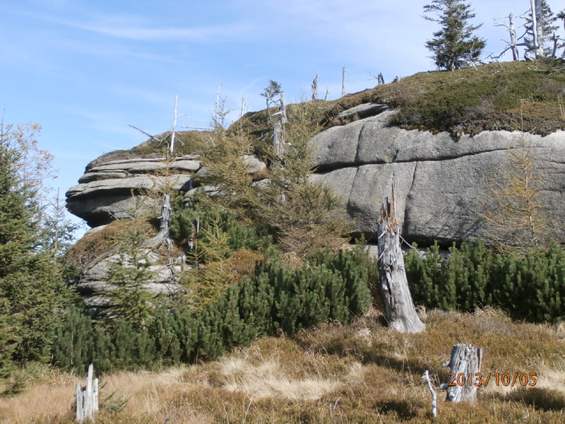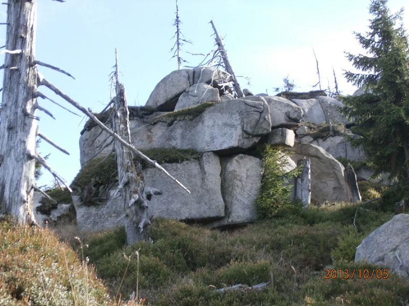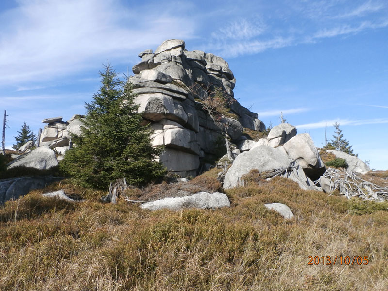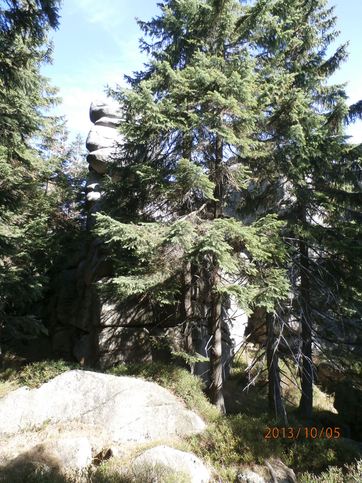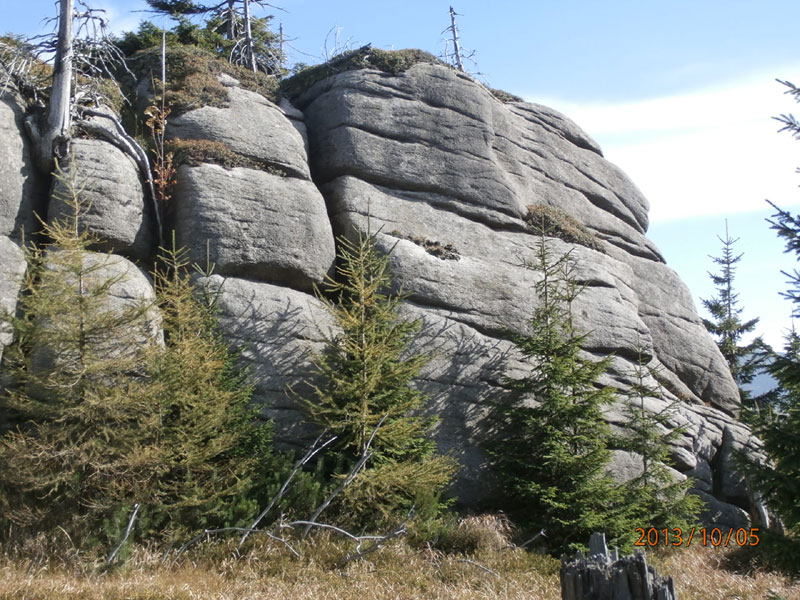 Tak, czy inaczej wejście na Skały Nagórne wymaga zgody Dyrekcji KPN. Nie ukrywam, że ta właśnie część Bażynowych Skał jest najpiękniejsza. Publikując niniejszy tekst staram się uzmysłowić CZEGO nas pozbawiono na rzecz swoiście pojmowanej ochrony przyrody. Bażynowe Skały są unikatowym kompleksem skalnym bez precedensu w całych Sudetach. Na Hutniczym Grzbiecie na odcinku 1550 m wyrastają 92 nazwane skały w tym 3 zgrupowania skalne i 3 rumowiska. Pół wieku temu, autor nazwy skał Tadeusz Steć widział ich zaledwie 20. Nazwa ich najwyższej części pochodzi od przymiotnika nagórny – położony na górze, górujący w antonimii do nadolny. Na Skały Nagórne składa się 35 nazwanych obiektów w tym jedno zgrupowanie skalne i jedno rumowisko, poza tym cztery inne nazwy związane z tym kompleksem.