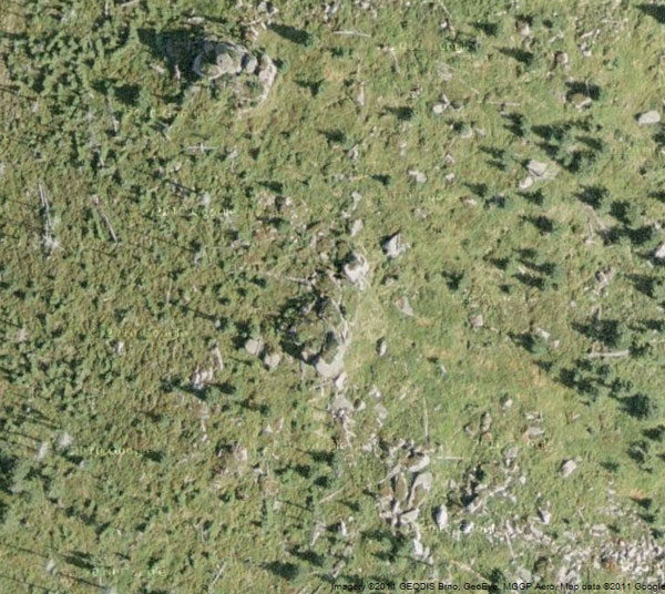 43A. MAŁE RUMOWISKO – Granitowe blokowisko na zach. zboczu Hutniczego Grzbietu o rozmiarach 50 x 40 m. Opada spod Foczki w kierunku Bażynowej Ścieżki, która dawniej przecinała jego dolną część. Obecnie obchodzi rumowisko od pn. i SE wychodząc na grzbiet pomiędzy Foczką i Ołtarzową. Nazwa relacyjna i antonimiczna do Wielkiego Rumowiska. Zestawiony petronim o motywacji topograficznej z funkcją określającą.