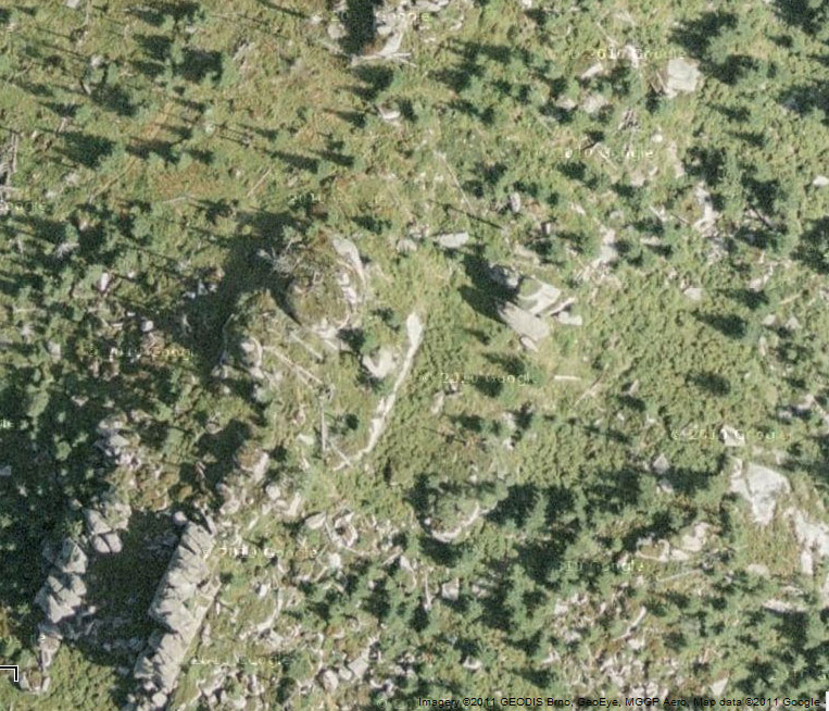 84. ŚLIMAK – Charakterystyczna grupa Skał Nagórnych wyrastająca z granitowego wzgórka w odległ. 41 m na SW od płd. ściany Wielkiego Rupu, oraz 34 m na SE od Oszcządków. Kształtem przypomina ślimaka zwróconego na zach. Wymiary owalnego wzgórka: 24x16 m, a skał 17x7 m. Wys. ok. 5 m. Federico Garcia Lorca Książka wierszy. Przygody wędrowniczka: A tymczasem ślimak niczym panisko na ścieżce niedostrzegalny, patrzy i pejzaż kontempluje. Natury spokój przecudny, boski i niepomierny daje mu moc i wiarę: Petronim o motywacji topograficznej.
