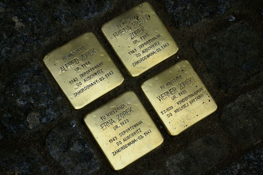 Pomysłodawcą upamiętniania w ten sposób ofiar nazizmu jest Gunter Demnig, niemiecki artysta, który realizuje swoją ideę od początku lat 90-tych XX wieku. Dzisiaj zamontował we Wrocławiu, w chodnikowym bruku, przed kamienicą na ul. Jedności Narodowej 95, cztery kamienie pamięci, poświęcone osobom, które mieszkały tutaj przed oraz w czasie II wojny światowej. Była to rodzina Zorków, która prowadziła w kamienicy sklep tytoniowy. Troje z nich trafiło w marcu 1943 roku do obozu koncentracyjnego w Auschwitz, gdzie zostali zamordowani. Z zawieruchy wojennej uratował się tylko Werner Zorek, który 7 lutego 1939 roku został wywieziony do Wielkiej Brytanii, w ramach akcji Kindertransport, zorganizowanej przez rząd brytyjski.