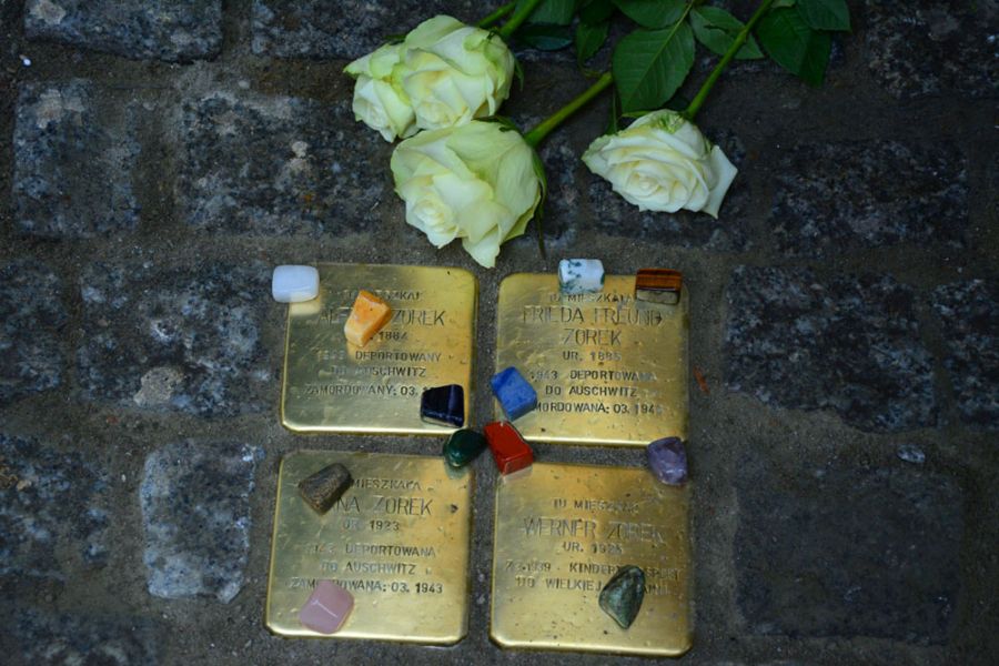 Podczas uroczystości wmurowania kamieni obecny był, mieszkający dzisiaj w Nowym Jorku, Michael Zorek wraz ze swą siostrą, wnukowie deportowanych do Auschwitz Alfreda i Friedy Zorków. Oboje są dziećmi wywiezionego w wieku 14 lat do Wielkiej Brytanii Wernera, który dzięki temu uniknął śmierci w obozie koncentracyjnym (jego starsza siostra Erna nie miała takiego szczęścia, zginęła w Auschwitz wraz z rodzicami).