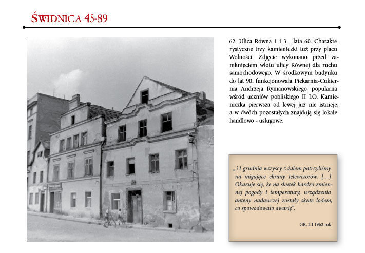 – „PRL po świdnicku. Świdnica 1945-1989” to album ponad 250 fotografii wzbogacony wycinkami z prasy lokalnej wydawanej w tym okresie w Świdnicy i na Dolnym Śląsku. To pięć rozdziałów, czyli pięć dekad zamykających dzieje miasta w klamrze począwszy od zakończenia II wojny światowej po zmiany systemowe w 1989 roku – mówi o albumie wydawca, Monika Krawczyk-Rudnicka i dodaje, że jest to już drugi album, który ukazał się nakładem tego wydawnictwa. Pierwszy, czyli „Stara Świdnica” przedstawia Świdnicę z przełomu XIX i XX wieku na ponad 250 pocztówkach.