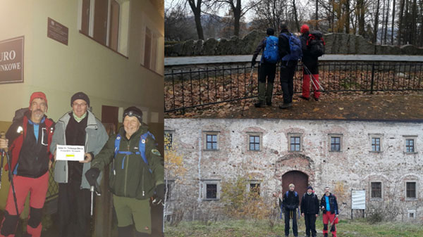 W środę 15 listopada 2017 roku odbyło się przejście szlakiem, który niedawno otrzymał imię legendarnego przewodnika Tadeusza Stecia. Szlak żółty prowadzący od siedziby PTTK do skał Słonecznik jest trasą bardzo wymagającą. Prowadzi cały czas pod górę, a oprócz tego trzeba pokonać wiele wzniesień. Są to m. in.: Witosza, Grodna, Czoło. Na pomysł przejścia wpadł Robert Nowak i to on był prowadzącym trasę. Ponieważ niedawna zmiana czasu spowodowała, że szybko zapadają ciemności, w drogę wyruszyliśmy o wpół do siódmej rano. Spotkaliśmy się pod umieszczoną na budynku PTTK tablicą upamiętniającą Tadeusza Stecia i po zrobieniu pamiątkowego zdjęcia poszliśmy przed siebie. Oczywiście nie trzymaliśmy się kurczowo szlaku żółtego. Gdy po drodze pojawiło się coś ciekawego co znajdowało się nieco poza szlakiem szliśmy tam by to obejrzeć.