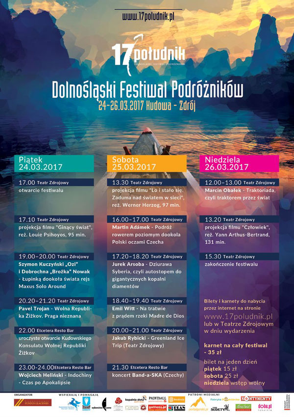 Program oraz szczegółowe informacje o Dolnośląskim Festiwalu Podróżników -17 Południk na stronach: www.17poludnik.pl. www.facebook.com/17poludnik.