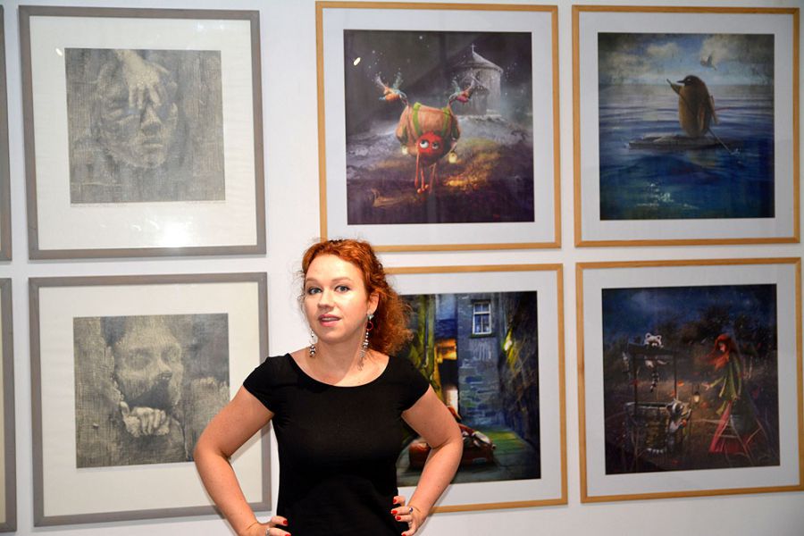 W pracach Matyldy Koneckiej, w które długo można się wpatrywać, chłonąc ich wielowarstwowość przekazu, niesamowite kolory i podziwiając bajkowy, nieco surrealistyczny klimat, również znajdziemy sporo wątków sudeckich. Nic dziwnego, skoro wychowała się w domu z widokiem na Karkonosze… Na wystawie obejrzeć można między innymi jej dzieło zatytułowane „Na szczycie góry / Śnieżka”, ale równie niezwykłe i godne obejrzenia są obrazy (nie ma ich na wystawie w Galerii Miejskiej, ale można je znaleźć w sieci), na których zobaczyć można Schronisko Orle w centrum wszechświata, Chatkę Górzystów, Śnieżne Kotły, czy Schronisko Jagodna w Górach Bystrzyckich.