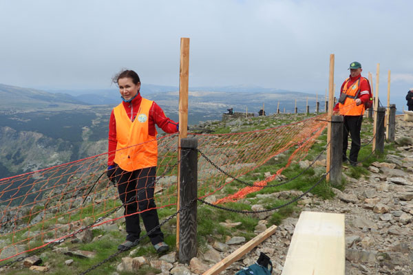Na szczycie Śnieżki zostały zamontowane czerwone siatki wygradzające obszar, który jest udostępniany turystom. Montowali je wolontariusze oraz pracownicy KPN i KRNAP. Siatki mają nie tylko być fizyczną barierą, ale też symbolem tego jak może wyglądać Śnieżka.