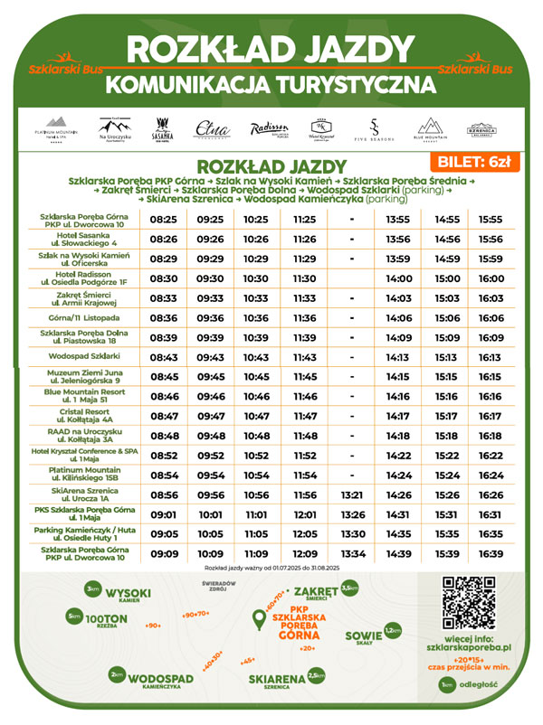- pozostali turyści – bilet 6 zł za przejazd – płatne u kierowcy