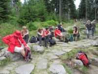 Przygotowani po zwiedzeniu gospodarstwa szkółkarskiego, wyruszyliśmy z M. Kroczek Koralową Ścieżką i Ścieżką nad Reglami pod Śnieżne Kotły, aby w myśl zasady „repetitio est mater studiorum” rozpoznawać rośliny w terenie. Idąc, słuchaliśmy ptaków. K. Dobrowolska-Martini, która jest ornitologiem, pomogła nam rozpoznać m.in. sikorę sosnówkę – „bywalczynię” borów świerkowych. Po posileniu się w schronisku „Pod Łabskim Szczytem” wróciliśmy przez Trzy Jawory do Jagniątkowa. Kończąc wycieczkę, dowiedzieliśmy się, że Karkonoski Park Narodowy przewiduje następną edycję szkolenia w siedzibie Karkonoskiego Banku Genów w Jeleniej Górze-Jagniątkowie oraz kolejne kursy dla przewodników KPN w innych miejscach.