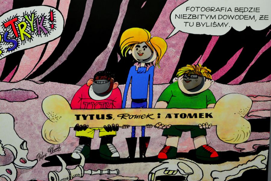 Komiks, na którym wychowało się kilka pokoleń, nie miał łatwego początku, bo powstał w czasach, gdy tego typu przedsięwzięcia traktowane były jako niemoralny owoc zgniłego kapitalizmu i coś nieczystego ideowo. Mimo to, udało się przebić przez komunistyczne zapory i pierwsze przygody Tytusa, Romka i A’Tomka pojawiły się pod koniec 1957 roku w popularnym „Świecie Młodych”. Dzisiaj komiksy Papcia Chmiela znają wszyscy, jak mówią autorzy wystawy: „od emeryta po przedszkolaka”. Tak też została zaprojektowana wystawa, by każdy znalazł na niej coś dla siebie.