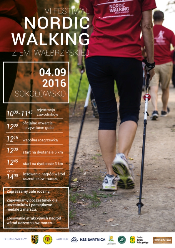 Burmistrz Mieroszowa Marcin Raczyński, Starosta Wałbrzyski Jacek Cichura oraz Sołtys Sokołowska Lidia Frąckowiak zapraszają 4 września 2016 roku, o godzinie 12:00 do Sokołowska na VI Festiwal Nordic Walking Ziemi Wałbrzyskiej. Uczestnicy zmierzą się z dystansem 3 lub 5 kilometrów urokliwych szlaków turystycznych Gór Suchych. Start i meta przy Pensjonacie „Leśne Źródło” w Sokołowsku.