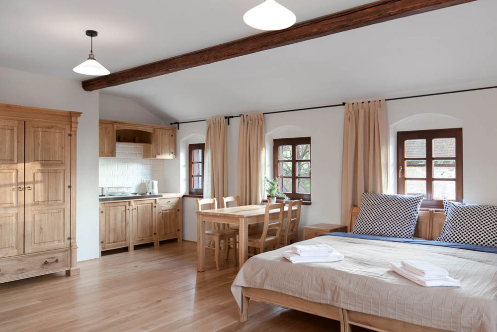 Do Waszej dyspozycji mamy 12 pokoi i 4 apartamenty (do 66 os.) rozlokowane w trzech budynkach – Villi Greta, Starej Wozowni i Domu Arnolda oraz Dom w Sadzie (do 11 os.). Na parterze Villi Greta znajduje się restauracja z kominkiem, gdzie serwujemy wszystkie posiłki – od śniadania do kolacji (albo późnowieczornych pogaduszek przy winie), a w Domu Arnolda i Starej Wozowni 3 sale na przyjęcie, warsztaty lub szkolenie. Dla poszukiwaczy okazji last minute mamy od czasu do czasu niezłe propozycje.