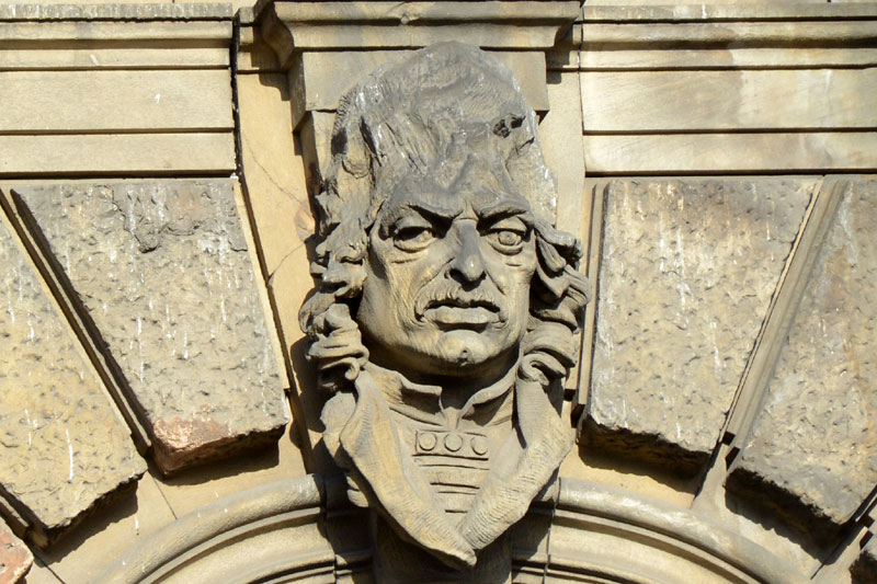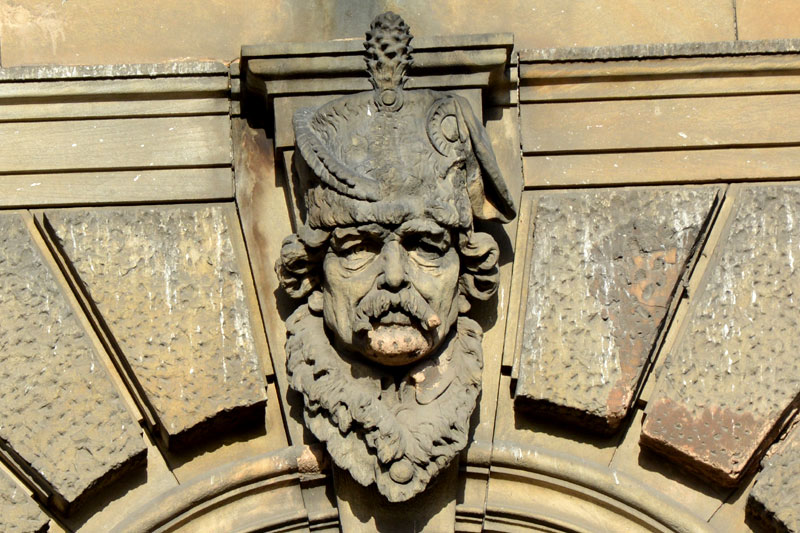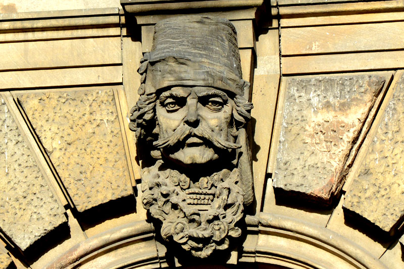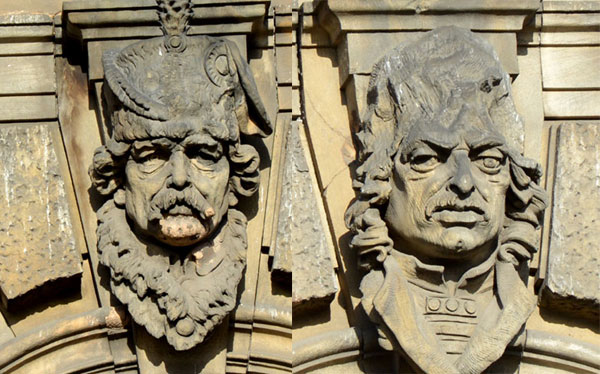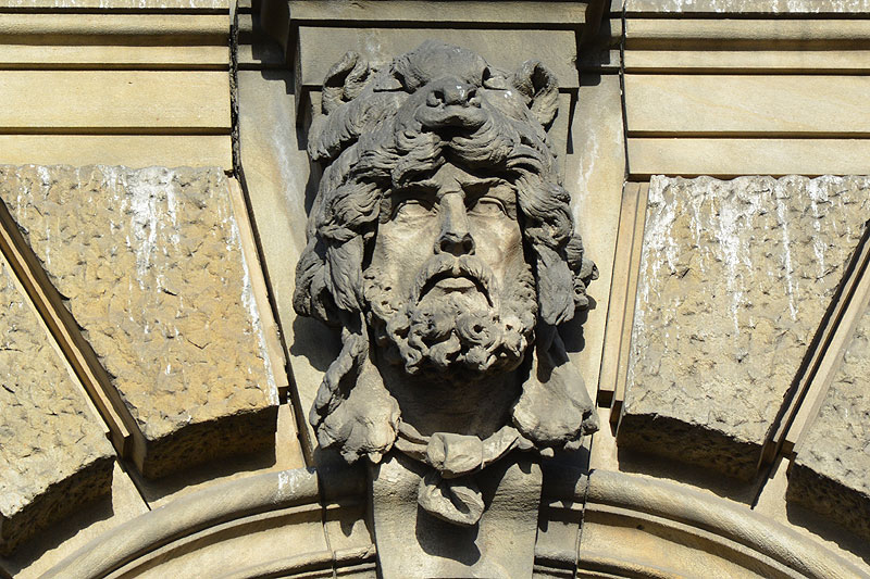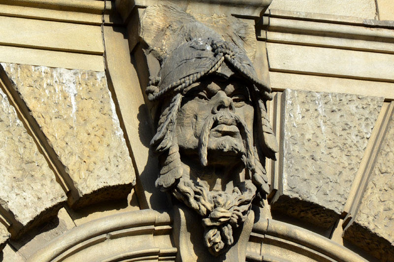 Skąd wzięły się kamienne głowy? Autorem dekoracji fasady jest Wrocławski rzeźbiarz Christian Behrens oraz jego uczeń Ernst Seger. Nas interesuje szczególnie ten drugi, bo to właśnie on jest autorem sześciu postaci ponad oknami. Urodził się w 1868 roku w Nowej Rudzie (zmarł w 1939 roku w Berlinie), a z jego licznych prac warto wymienić chociażby potężne rzeźby będące alegoriami walki i zwycięstwa, które można podziwiać przy fontannie na wrocławskim pl. Jana Pawła II, czy zrekonstruowany niedawno pomnik polującej Diany w Parku Szczytnickim.