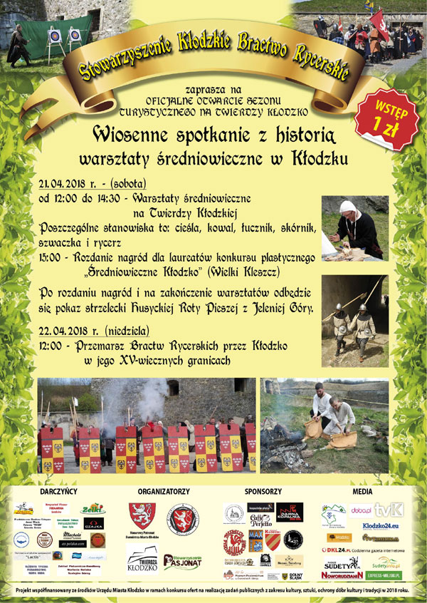 Projekt pt " Wiosenne Spotkanie z Historią – Warsztaty średniowieczne w Kłodzku " jest współfinansowany ze środków Urzędu Miasta w Kłodzku w ramach konkursu ofert na realizację zadań publicznych z zakresu kultury, sztuki, ochrony dóbr kultury i tradycji w 2018 roku.