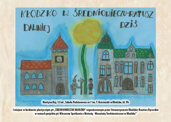 Już ponad miesiąc wcześniej postaraliśmy się o promocję naszego kwietniowego wydarzenia, organizując dla dzieci i młodzieży kłodzkich szkół podstawowych konkurs plastyczny pt: Średniowieczne Kłodzko. Efektem są wspaniałe prace naszych miejscowych artystów, a zwycięzca poprzez swoją wyobraźnię przeniesioną na papier zaprasza na nasze wydarzenie z rewersu ulotki promocyjnej.