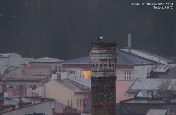 Przyleciały już za to w Sudety bociany. Na razie udało nam się dotrzeć do informacji, że pierwszy pojawił się w Trutnovie i zasiedlił nieczynny komin trutnovskiego browaru. Potwierdziliśmy tę informację niemal osobiście, zerkając przed chwilą na ów komin za pomocą jednej z kamer, jakie umieszczone są w Trutnovie: