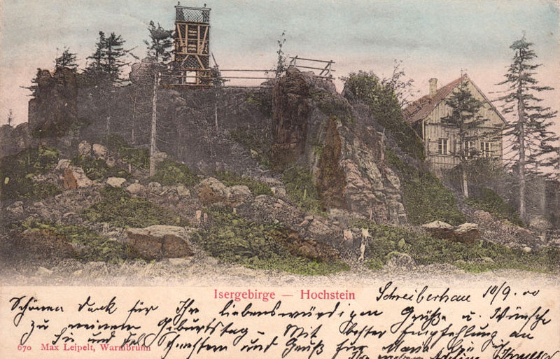 Wysoki KamieńSudeckie ABCWieże widokoweSudety polskieGóry i Pogórze IzerskieWysoki KamieńLata 1895-1903; źródło: fotopolska.euLata 1898-1902; źródło: fotopolska.euLata 1905-1908; źródło: fotopolska.eu kota: 1058 m fundator: ? konstrukcja: drewniana wysokość: ? otwarta: 1882 r. zniszczona: po 1945 r.