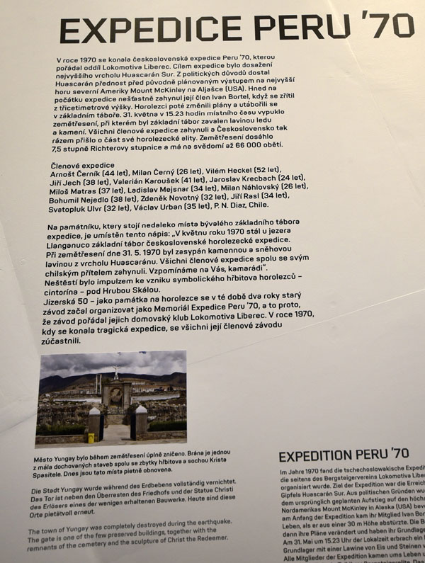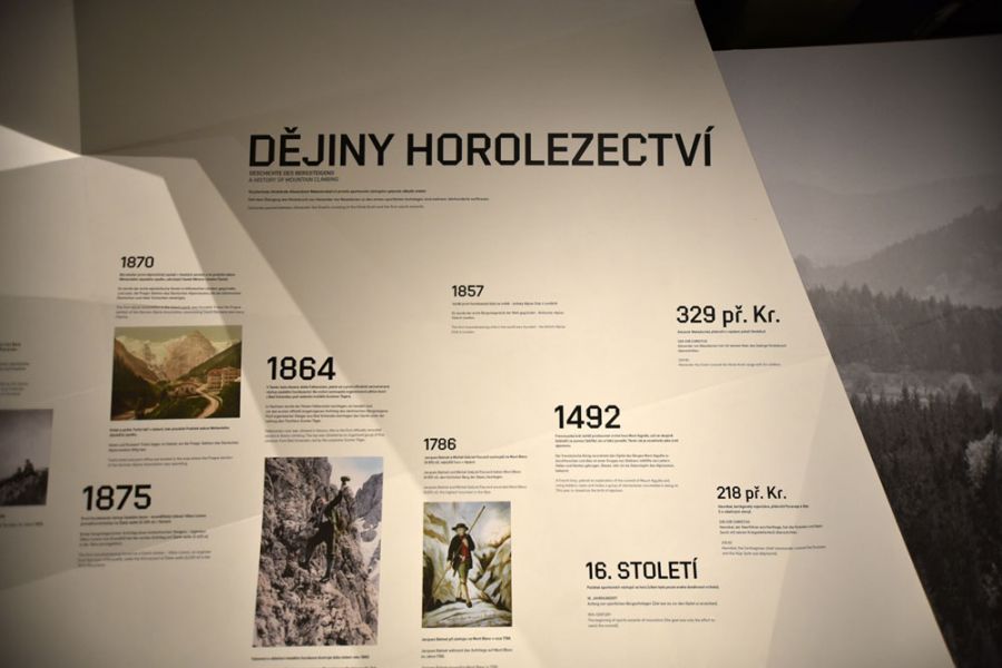 Tematycznie wystawa dotyczy historii obecności ludzi w górach i współczesnej eksploracji największych pasm górskich. Wszystko to przeplatają informacje nawiązujące do dziejów czeskich wypraw wysokogórskich oraz wspinaczki skałkowej w Czeskim Raju. Przedstawiono dni chwały czechosłowackich i czeskich wypraw, ale też i te smutne zdarzenia, które wpisały się w historię światowego „horolezectva”. Przykładem tego jest czechosłowacka wyprawa w Andy w roku 1970, kiedy to wszyscy, spokojnie śpiący w namiotach uczestnicy zginęli, po zejściu lawiny kamiennej, będącej efektem lokalnego trzęsienia ziemi.