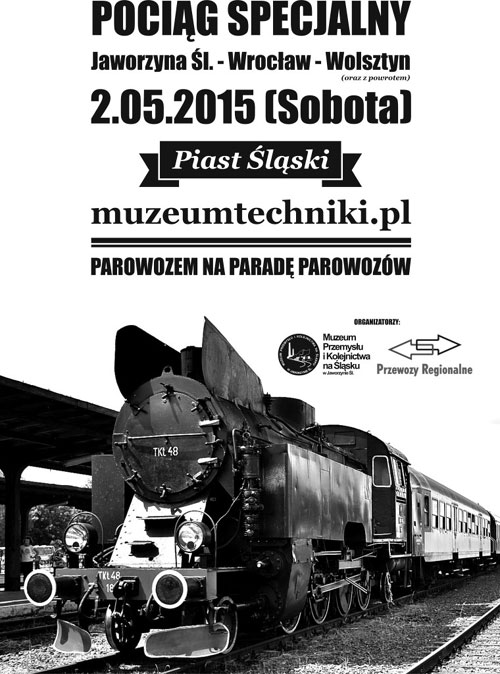 2 maja 2015 roku w Wolsztynie, już po raz 22., odbędzie się Parada Parowozów, jedna z największych i najstarszych imprez poświęconych lokomotywom parowym. Chcąc godnie, i na odpowiednim poziomie uczcić i jednocześnie uświetnić to wydarzenie, Muzeum Przemysłu i Kolejnictwa na Śląsku w Jaworzynie Śląskiej oraz Przewozy Regionalne, dla wszystkich tych, którzy kochają parowozy, i dla tych którzy mają to jeszcze przed sobą, przygotowały nie lada wydarzenie!