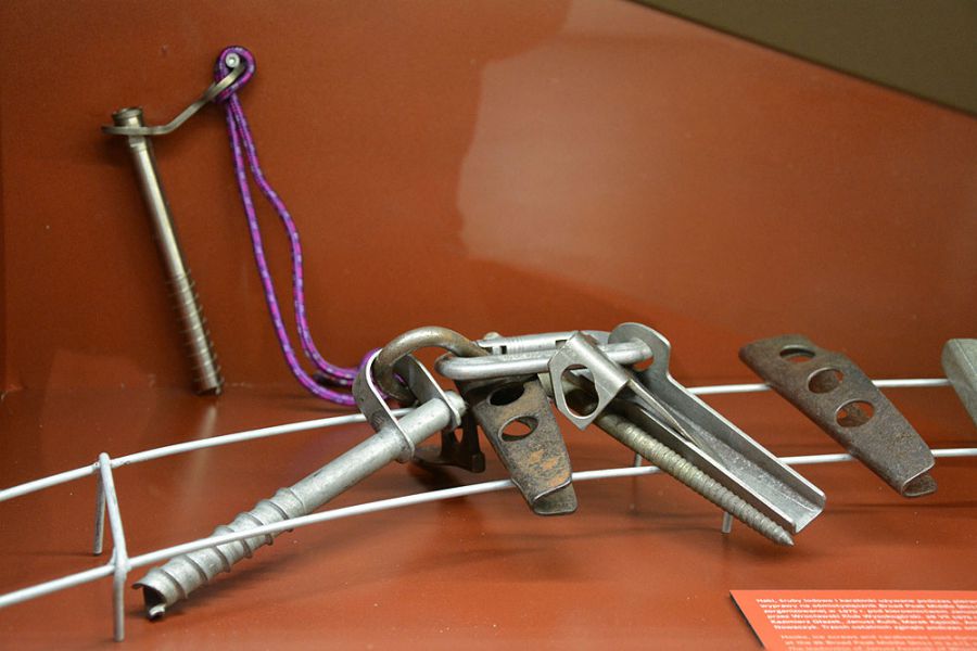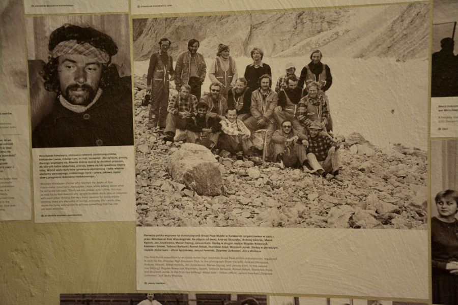 Są też elementy górskie. Na wystawie zobaczymy czekan, który użyty został w 1975 roku podczas zdobywania Broad Peak Middle (8011 m), wyprawy zwycięskiej, ale i tragicznej, bo podczas schodzenia ze szczytu zginęło trzech jej uczestników. Z tej samej wyprawy w gablocie zobaczyć można haki, śruby lodowe i karabinki, są również zdjęcia członków wyprawy, a osobno Aleksandra Lwowa, wrocławskiego himalaisty, zdobywcy czterech ośmiotysięczników. Eksponaty pochodzą ze zbiorów Bogdana Jankowskiego i Janusza Fereńskiego. Na dokładkę zdjęcie 79-letniego Stefana Tutaka, który ukończył Bieg Piastów w marcu 1979 roku.