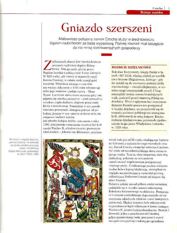 Zamek Czocha od niespełna siedmiu dekad znajduje się - w wyniku powojennego przesunięcia granic - w polskich rękach. Wcześniej w jego korytarzach i komnatach słychać było język niemiecki, względnie czeski. W długim panowaniu na zamku naszych sąsiadów zza Bugu wyjątek stanowi trwający pół wieku epizod, gdy sięgnęli po niego śląscy Piastowie...