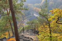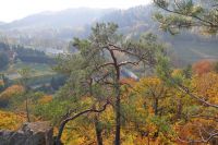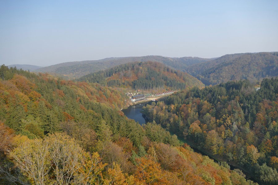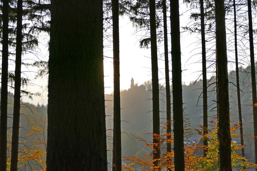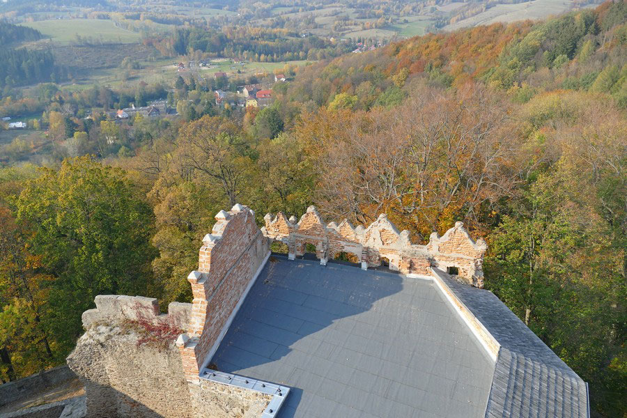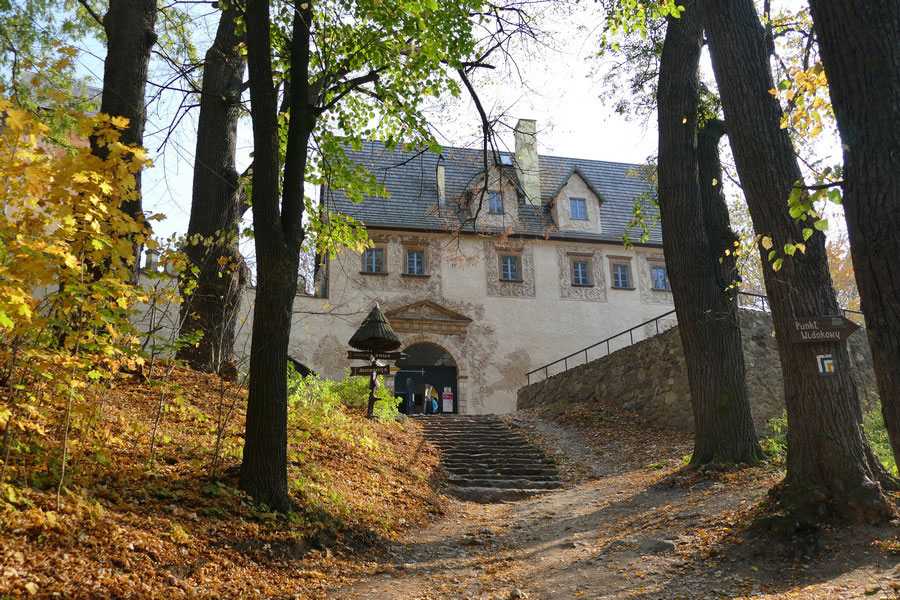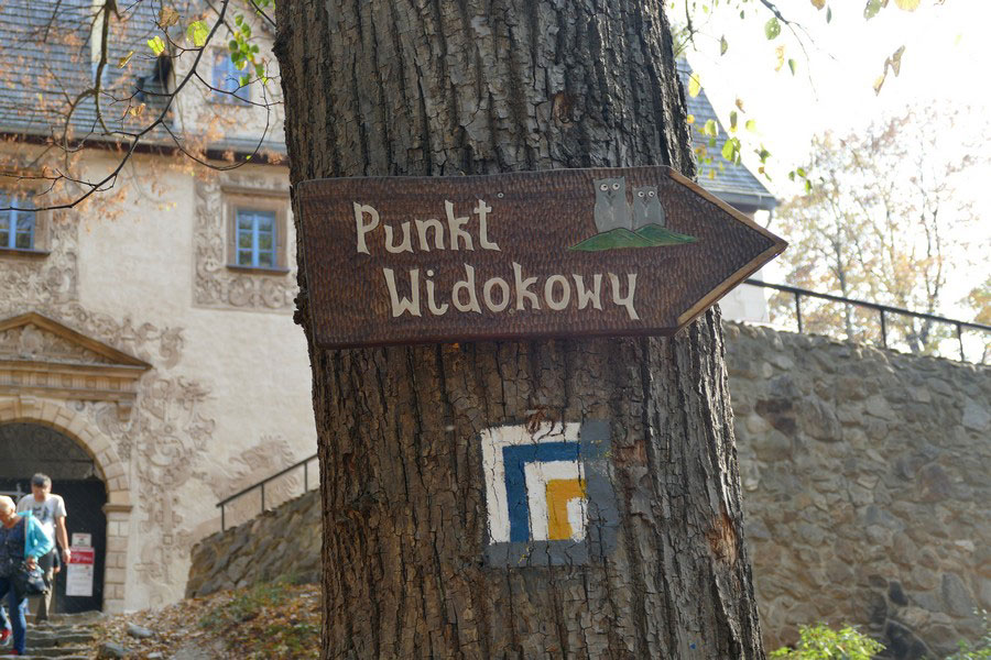 Przed wejściem do zamku znajduje się drogowskaz kierujący do punktu widokowego. Znajduje się on blisko, na zachodnim stoku wzgórza zamkowego. Przebiegają obok niego żółty i niebieski szlak turystyczny, którymi idąc dalej można zejść do Zagórza. Trasa ta jest sympatyczna i warto ją wybrać, gdy w jedną stronę idzie się również tymi szlakami, ale od strony północnej zamku.