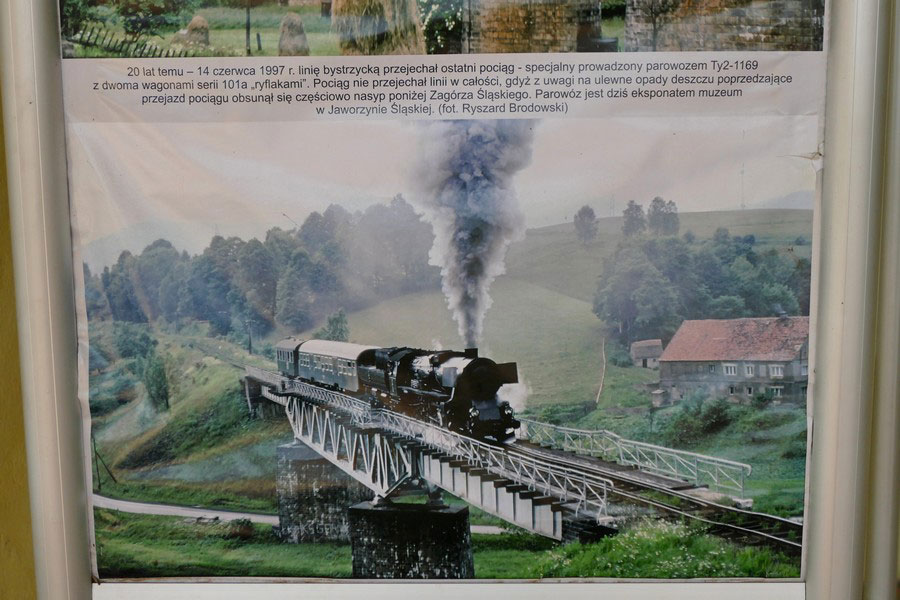 Na jego terenie znajduje się wystawa archiwalnych zdjęć przedstawiająca najważniejsze wydarzenia dotyczące linii kolejowej biegnącej doliną Bystrzycy oraz tabor kolejowy użytkowany na niej. Są m.in. fotografie pokazujące przyjazd do Zagórza Śląskiego pierwszego pociągu w 1904 r. oraz przejazd tą trasą ostatniego w 1997 r. Historia linii będzie miała swój dalszy ciąg. Już niebawem linia ma zostać reaktywowana.