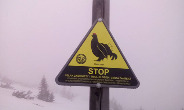 Zamknięty został również odcinek szlaku zielonego z Polany przez morenę Kotła Wielkiego Stawu do grzbietowego szlaku czerwonego. Obejście jest poprowadzone szlakiem żółtym przez Pielgrzymy do Słonecznika. Odcinki te zostały oznakowane specjalnymi tablicami z sylwetką cietrzewia.