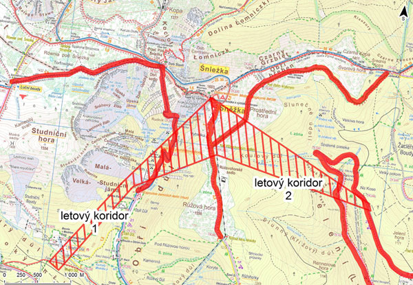 Przy pracach remontowych wykorzystywany jest śmigłowiec, którego loty wymuszają czasowe zamknięcie kilku kolejnych szlaków. Wynika to z przepisów, które mówią, że w korytarzach przelotów nie mogą przebywać niepowołane osoby. W związku z tym obecnie zamknięty jest szlak niebieski prowadzący przez Obří důl na Równię pod Śnieżką. Otwarcie szlaku planowane jest na 19 września, ale z zastrzeżeniem, że otwarcie może się opóźnić. Dzień później nie będzie można korzystać (do odwołania) z trasy rowerowej prowadzącej Lvím dolem oraz ze szlaku zielonego (tzw. Trawersu) od schroniska Jelenka do szlaku żółtego na zboczach Śnieżki.