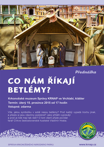 Z kolei w salach dawnego klasztoru Augustianów (także we Vrchlabí) 15 grudnia 2015 roku, od godziny 17:00 będzie można obejrzeć wystawę „Co nam mówią szopki betlejemskie?”. Czas przedświąteczny to doskonała okazja, by wystawę zobaczyć!