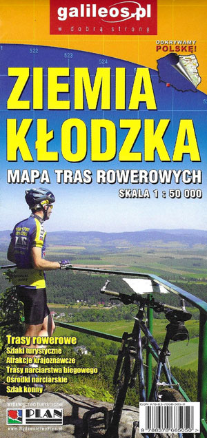 Dwustronna mapa rowerowa "Ziemia kłodzka" w skali 1:50 000. Na mapie w czytelny sposób zaznaczone zostały znakowane trasy rowerowe, a także szlaki turystyczne, atrakcje krajoznawcze, trasy narciarstwa biegowego, ośrodki narciarskie oraz szlak konny.