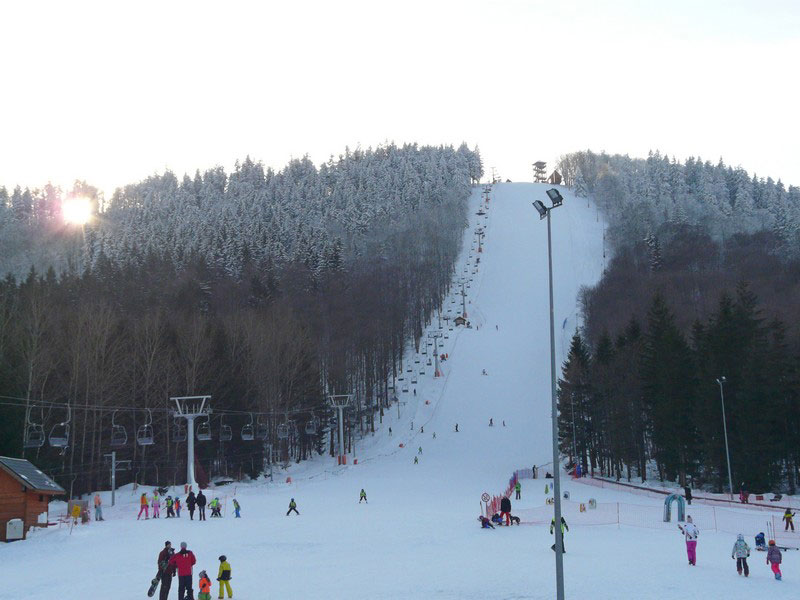 Do wyciągu wwożącego na grzbiet Masywu Dzikowca dotarłem. Ze względu jednak na późny czas i zmęczenie, które były wynikiem przygody z wydostaniem po drodze samochodu ze śniegu, odpuściłem wjazd na górę i wejście na Dzikowiec. W śnieg wjechałem i nie mogłem przez dłuższy czas z niego się wydostać, gdy nie chcąc cofać na jednej z lokalnych dróg postanowiłem zawrócić. Śnieg poza drogą wydawał się ubity przez traktor, co wywnioskowałem po śladach. Jednak później się okazało, że zanim tam spadł, samochody porobiły w grząskim gruncie koleiny, potem zamarzły, a następnie wypełnił je śnieg. Poza tą przygodą, wszystkie drogi, którymi jechałem, były przejezdne, nie było na nich śniegu.