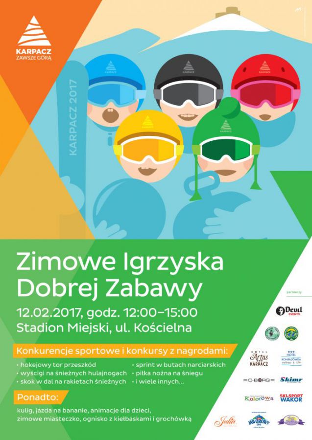 W niedzielę 12 lutego od godziny 12 do 15 na Stadionie Miejskim w Karpaczu czekać będzie na Was cała masa atrakcji! Hokejowy tor przeszkód, wyścigi na śnieżnych hulajnogach, skok w dal na rakietach śnieżnych, sprint w butach narciarskich, pika nożna na śniegu. Ponadto kulig, jazda na bananie, animacje dla dzieci, ognisko z kiełbaskami i grochówką. Pakujcie się całą rodziną i jazda do Karpacza!